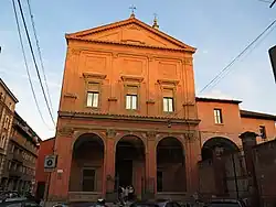 A church at the site was putatively established at the site in 1247 by Camaldolese nuns. The present church was erected in 1602 by Giulio della Torre, a pupil of Domenico Tibaldi. By the Napoleonic era, the church was used for a time as barracks. The church has two sculptures of St Peter and St Paul by Guido Reni, known almost exclusively for his paintings. The main altarpiece is an Ascension of Christ by Ludovico Carracci.[1] Other sculptures in the church were completed by Giuseppe Maria Mazza and G. Fiorini and paintings by Giacomo Francia (Nativity, c. 1552); Francesco Salviati (Madonna and Child with Saints, c. 1540); Lucio Massari (Visitation , 1607); Bernardino Baldi (Coronation of the Virgin, before 1615); and Bartolomeo Passerotti (Martyrdom of St Catherine) and his son Tiburzio (Annunciation and Christ carrying cross and St Veronica); Domenico Maria Canuti (St Cristina); Giovanni Battista Bertusio (Resurrection of Christ, early 17th-century); and Mastelletta.[2]