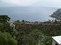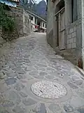Santa Cruz La Laguna is a traditional Maya village located on the steep mountainside of the lake, roughly 325 vertical feet (99 m) above the lake's surface (population: approximately 3,100). The village has the unique characteristic of being accessible only by boat or footpath. A single, winding road connects the dock to the village. There is a very rough road connecting Santa Cruz to Sololá which is used to transport heavy goods, concrete blocks, furniture, and a few vehicles.