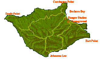 The terrain consists of rolling hills, deep canyons, and a coastal lagoon. Highest peak is Vail Peak, at 1,589 feet (484 m).