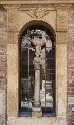 Under the portico, in the center of a window, on a column, there is a stone rooster dating back to the fourteenth century, called "Gallo di S. Pietro" to remember the evangelical episode of the denial of Jesus. Also under the portico are some mortuary tombstones including one, with a pair of real scissors in the center, belonging to a tailor. Significant for the symbolism of the passion of Christ is that the distance between this courtyard and the nearby church of San Giovanni in Monte (so called because it stands on the only natural protuberance of the central dish of Bologna) would be the same that there is in Jerusalem between the Holy Sepulcher and Calvary.