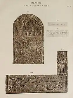The Saqqara Aramaic Stele, also known as the Berlin stele or the Egypto-Aramaean Stela of Ahatabu, is an Egyptian-Aramaic stele found in Saqqara in 1877.[1]