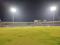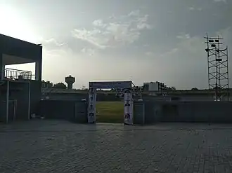 The main stadium is spread over an area of 24,000 m2 (260,000 sq ft). It has seating capacity of 3000 people where cricket, hockey or football matches can be held. A basketball ground has seating capacity of 250 people where handball and volleyball matches can also be held. Two tennis courts with seating capacity of 250 people are constructed. It has a parking capacity of 250 cars and 1000 two-wheelers.[1][6]