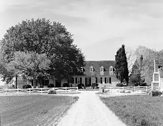 Sarum is a historic home located at Newport, Charles County, Maryland, US. The oldest extant part of the house was built in 1717 by Joseph Pile on or near the site of his grandfather's 17th century house.[2] It was a box-framed hall and parlor dwelling, 32 by 18 feet. A shed was added in 1736; later in the 1800s the ends were extended and new walls of brick were constructed giving the house its present dimensions. Sarum was patented to John Pile in 1662, and remained in the ownership of the Pile family until 1836. It is one of Maryland's finest small Colonial dwellings.[3]