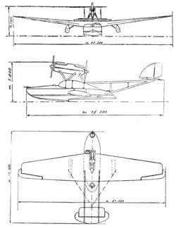 - Powerplant: 2 × Isotta Fraschini Asso 500 water-cooled V-12, 370 kW (500 hp) each (nominal)