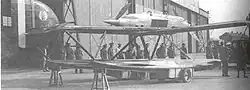 The S.65 was a single-seat twin-engine floatplane of low-wing monoplane configuration with two floats. Its tailplane was supported by two booms and the floats, which extended well toward the rear of the aircraft. Its two 745-kilowatt (1,000-horsepower) Isotta Fraschini engines were mounted in tandem, each driving a two-bladed propeller, one in the nose in a tractor configuration and the other at the rear of the fuselage in a pusher configuration.[1]