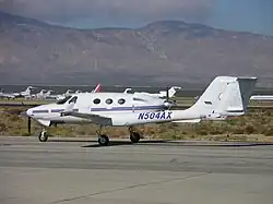 The A500 was developed from the M-309 CarbonAero technology demonstrator designed by Burt Rutan and built by Scaled Composites at the Mojave Airport. The "309" designation refers to this being Rutan's 309th aircraft design. The 309 first flew in March 2000, but the aircraft has since been gutted and was used as a static display outside the Adam Aircraft Industries headquarters.[1] In 2006 the 309 was loaned to the Wings Over the Rockies Air and Space Museum and is now on display.