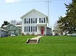 The William Allan House is located along North Railroad Street in the middle of the central business district in Scales Mound. The Allan House is an I-house of stone construction, built upon a stone foundation around 1859. The two-story house has a rear addition and features double hung sash windows.[2]