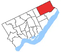 Following the 2012 federal electoral boundaries redistribution, the riding was split between Scarborough North and Scarborough—Rouge Park.