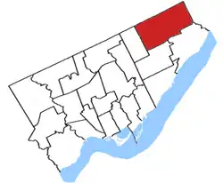 The riding covered the northeast part of the Scarborough part of Toronto. It stretched from Highway 401 in the south to Steeles Avenue in the north. In the east it ended at the border with Pickering and in the west at Midland north of Finch and Brimley south of Finch.