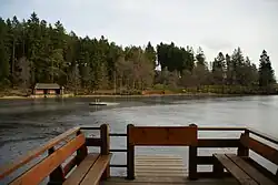 The area of the lake, which lies at a height of 914 metres (2,999 ft) above sea level immediately north of the Schlüchtsee farm between Grafenhausen and Rothaus,[2] is about 6 hectares (15 acres) and it has a shoreline just under 0.73 kilometres (0.45 mi) in length. It is 260 metres (850 ft) across from north to south and 230 metres (750 ft) from east to west. It is up to 5 metres (16 ft) deep.[3] The lake is popular for bathing and angling. A path runs past the lake to the Hüsli, named after Klausjürgen Wussow. The lake is part of a nature reserve, no. 3,032 covering 8.5 ha and known as the "Schlüchtsee", that was established on 11 October 1940.