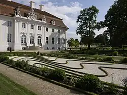 Following the reunification of Germany the estate was bought by the Messerschmitt Foundation in 1995. The foundation, devoted to preserving historical landmarks, spent 11 years and more than $30 million renovating the stucco building, with its Ionic half-columns and high mansard roof.[2][1]