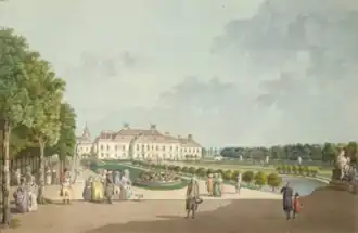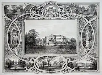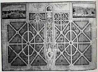 Architect Johann Lucas von Hildebrandt designed a three-wing complex with an extensive garden, orangery and castle chapel. In 1715, a pavilion of the orangery was decorated with frescoes by Jonas Drentwett. Salomon Kleiner created a series of drawings documenting the layout of the estate. Between 1729 and 1733, Hildebrandt built a St. John Nepomuk Chapel on the northwest edge of the extensive palace park.