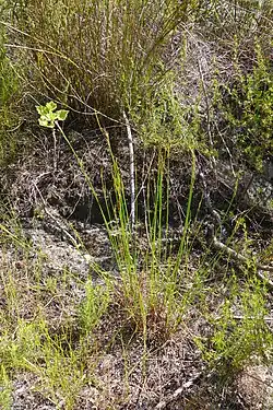 Most reports of this species are from coarse soils, but it appears to occasionally occur in wet habitats such as seepages and streamsides.[1]