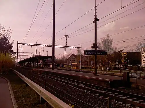 Schwerzenbach is a railway station in the Swiss canton of Zurich. It is situated in the municipality of Schwerzenbach on the Wallisellen–Uster–Rapperswil line.[2] It lies within fare zone 121 of the Zürcher Verkehrsverbund (ZVV).[3]