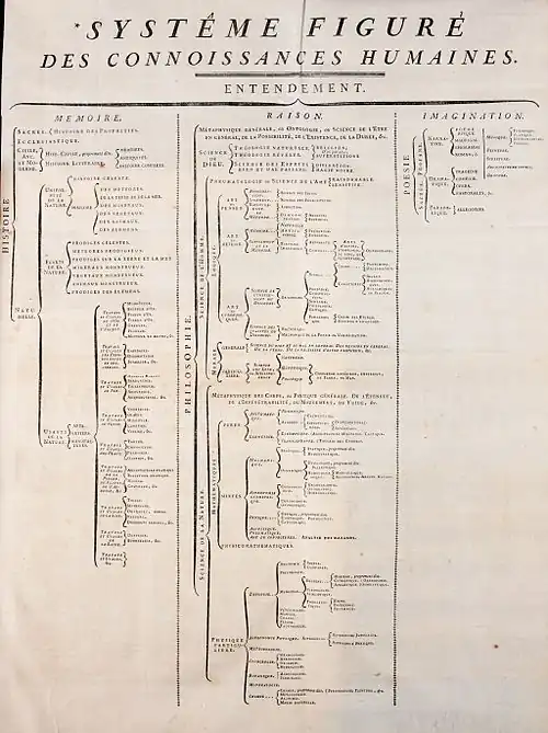 "Figurative system of human knowledge", the structure that the Encyclopédie organised knowledge into. It had three main branches: memory, reason, and imagination.