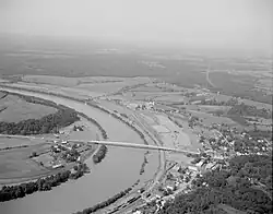 According to Scottsville's website, the town "served as Virginia's westernmost center of government and commerce during the 1700s, when rivers were the primary means of travel in the new American wilderness." During the late 18th and the 19th centuries attempts were made to improve navigability along the James, as well as other central Virginian rivers. Part of this was the construction of a canal running roughly parallel with the James west from Richmond. Scottsville was the largest port town along this route, called the James River and Kanawha Canal. The ultimate goal of this project was to connect the Atlantic with the Ohio River via the Kanawha River. These aims were not achieved, due to interruption by the American Civil War and the efficiency of the railroads. It did however succeed in making Scottsville a busy, prominent town. In fact, thanks to a wagon road connecting Staunton to Scottsville, all of the agricultural wealth of the Shenandoah Valley poured into town en route to Richmond and the sea, thereby making Scottsville the largest grain market in the state. Trade was disrupted when Union soldiers broke the canal works in the area. Then the train came, the tracks being laid directly on the towpath of the old canal, a monument to its demise. Eventually, the train too stopped taking passengers, leaving Scottsville a sleepy country town on a coal line.