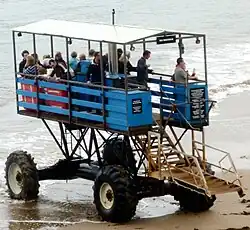 A sea tractor is a motor vehicle designed to travel through shallow seawater, carrying passengers on a platform elevated above a submerged chassis. The sea tractor was most popular during the early 1930s, as a unique way to give scenic tours to patrons of waterfront hotels and resorts. In other applications, sea tractors were used simply as a ferry through shallow waters. The use of sea tractors has declined since, as boats, ferries, and other aquatic vessels often serve the same function much more efficiently and comfortably.