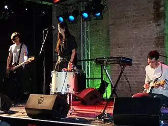 ![]() HTRK performing in 2007: Sean Stewart, Jonnine Standish, Nigel Yang | |