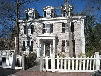 The Second Waterhouse House is an historic house at 9 Follen Street in Cambridge, Massachusetts. The 2+12-story wood-frame house was built on 1844, and is the most quintessentially Greek Revival house in the Follen Street Historic District. It was built by Benjamin Waterhouse, and is one of the earliest houses built on the street. Of particular historical interest is the assortment of heating systems that have been installed in the house since 1853, remnants of some of which are still found in the house's basement.[2]