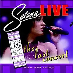 Selena Live! The Last Concert is a live album by American singer Selena. It was recorded on February 26, 1995, at the Houston Astrodome and was televised live on Univision.[2] The album was posthumously released by EMI Latin on March 27, 2001. The singer shared the concert with Tejano singer Emilio Navaira and performed to 66,994 people,[3][4] which broke the previous attendance record held by Selena the previous year. The concert was critically acclaimed for outperforming ticket sales by country music singers Vince Gill, Reba McEntire, and George Strait.[5][6] Selena's performance at the Astrodome became her final televised concert before she was shot and killed on March 31, 1995.[4]