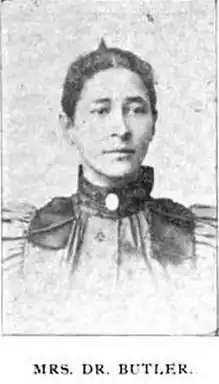 Following the death of her husband in 1931, Butler relocated to England where she worked in the Nursery School Association. Thereafter, she returned to the United States to live with her son and his wife in Arizona where she organized the first black women's chapter of the Gray Ladies Corps.[3] At the age of 92, Butler died of congestive heart failure on October 7, 1964, and was buried beside her husband in Oakland Cemetery in Atlanta. A portrait of Butler is displayed in the Georgia State Capitol building.