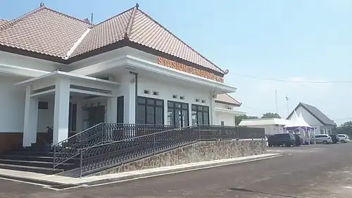 Sembung Station (Indonesian: Stasiun Sembung, station code: SMB) is a third-class railway station in Sembung, Perak, Jombang Regency, East Java, Indonesia, operated by Kereta Api Indonesia.[1] This railway station is at the most western railway station in Jombang Regency. This station is located Jalan Raya Sembung, 100 m south of Jombang–Kertosono Road. This station's new building is operated—which has four tracks (two main lines and two passing tracks)—since Jombang–Baron double track segment activation on 30 October 2019.[2]