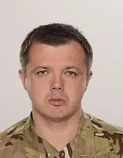 Semen Ihorovych Semenchenko (Ukrainian: Семен Ігорович Семенченко; born 6 June 1974) is a former deputy to the Verkhovna Rada of Ukraine, First Deputy Chairperson of the Verkhovna Rada of Ukraine Committee on National Security and Defence[3] and the commander-founder of the Donbas Battalion, a territorial defence battalion based in Dnipropetrovsk and Donetsk Oblasts.[4][5] He was a deputy of the Verkhovna Rada from 2014 to 2019.[6]
