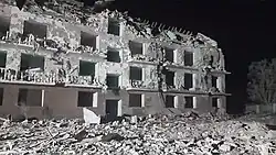 ![]() The residential building after the strike | |