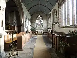Sterne began his education at Jesus College, Cambridge in 1733 and received his orders in August 1738.[2] His first clerical position was as assistant curate of St. Ives in 1737, and the next year he became the vicar at Sutton-on-the-Forest, where he remained until 1760.[3] There, he served about 120 families of parishioners with two services on Sundays.[4] Sterne's role as prebendary of York obliged him to give two sermons a year at York Minster, though some years he gave more than twenty.[5] The extra sermons may have reflected a particular skill for preaching, or a particular interest in earning extra income.[5] Sterne delivered hundreds of sermons across his career, most of which have not been preserved.[6][7]