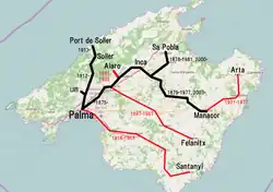 In 1977, the line Palma – Inca was the sole remnant of a network that once connected Palma with most of the island. In 2001, the section Inca – Sa Pobla reopened, followed by the section Inca – Sineu in 2002 and Sineu – Manacor in 2003.