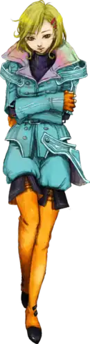 Setsu is a character in the video game Gnosia, who serves as a companion to the player. They are a non-binary soldier who, through a series of circumstances, finds themselves in a dimensional loop.[1] They were designed by Toru Kawakatsu, alias Mazukare, who intended them to be a fierce, aggressive person with a strong sense of justice. Setsu ended up being designed to have a clumsy side, which Mazukare found cute, though he did not initially intend this to be a trait. He discussed how he intended these traits to become evident through gameplay, citing how Setsu's attempts to put the character Yuriko into cold sleep after a confrontation demonstrated their aggression. This aggression, they found, made Setsu more likely to be put into cold sleep themselves. They discussed whether they should tweak their aggression levels; however, they also didn't want to change their character for their own convenience. In turn, they decided that, on the next attempt in this scenario between Setsu and Yuriko, the player would instead be given the option to tell them to tone it down.[2]