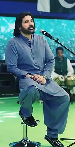 Shafqat Amanat Ali Khan PP (Urdu: شفقت امانت علی خان; pronounced [ˈʃəfkət əˈmaːnət əˈliː xaːn]; born 26 February 1965) is a Pakistani pop and classical singer, songwriter, and composer belonging to the Patiala Gharana tradition of music.[1][2] He was the lead vocalist of the Pakistani pop rock band Fuzön until 2006[3][4] and is a prominent playback singer in the Indian film industry and Pakistani television industry.[5][6][7][8] The youngest son of noted classical vocalist Ustad Amanat Ali Khan,[9][10] Ali started his musical training at the age of four under the tutelage of his uncle, Ustad Bade Fateh Ali Khan, who was widely regarded as the foremost exponent of Hindustani classical music in Pakistan.[11]