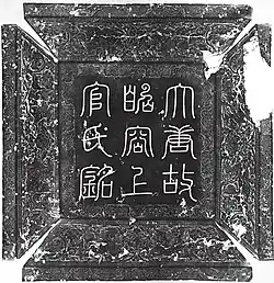Epitaph of Shangguan Wan'er, with lid. The lid reads: 大唐故昭容上官氏銘 "Epitaph of the late imperial consort (Zhaorong) Madam Shangguan of the Great Tang dynasty".
