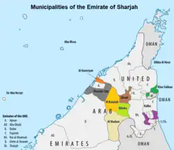 There are nine municipalities in the Sharjah Emirate:[5][6]