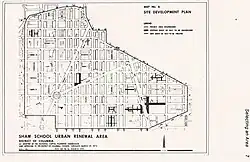 Until the 1960s, what is now Shaw was called Midcity. In 1966, planners used the enrollment boundary of Shaw Junior High School to define the Shaw School Urban Renewal Area – which created a concept of a "Shaw neighborhood" larger than what is generally considered Shaw today, covering today's core Shaw neighborhood, the U Street Corridor, Logan Circle and Truxton Circle.[7]