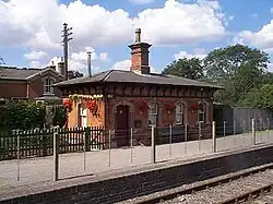 It is the current southern terminus of the Battlefield Line Railway, which runs to here from Shackerstone. The station is located at the foot of Ambion Hill and is actually the reconstructed Humberstone Road railway station from Leicester. The original station closed in 1965 and was dismantled and relocated (except for a small lamp room that now serves as the Station Pottery).