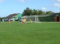 Floodlights were installed at the ground in January 2015[32] and the pitch has been leveled and re-laid. With effect from the 2016/17 season, the seated capacity at Holm Park is 190, with undercover standing for a further 600 spectators. Season by season improvements now mean that there is cover on 3 sides of the ground and the pitch has been recognised as one of the best at its level in the country when Head Groundsman Roger Pullen was awarded a "Highly Commended" award by the Football Association in August 2018. Work done on the pitch includes initial levelling as the pitch was slightly sloped, laser levelling of the pitch and a drainage system and sprinklers being installed before the pitch was laid. The pitch is worked on every Summer in order to maintain the standard of it.