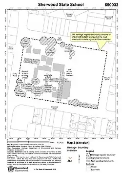 - ^ DPW, "Sherwood State School, Layout of Fittings etc. & Drainage", Drawing 78-410A, 24 October 1951