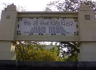 Sheth Chimanlal Nagindas Vidyalaya is a school and the Sheth Chimanlal Nagindas Vidyavihar (abbreviated Sheth C. N. Vidyavihar) is a group of educational institutes located within a campus in the Ambawadi area of Ahmedabad, Gujarat, India.[1] It is one of the oldest educational institutions in Gujarat established in 1912.
