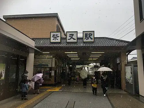 Shibamata Station (柴又駅, Shibamata-eki) is a railway station on the Keisei Kanamachi Line in Shibamata, Katsushika, Tokyo, Japan, operated by the private railway operator Keisei Electric Railway.