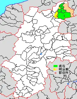 Map showing original extent of Shimotakai District in Nagano Prefecture: