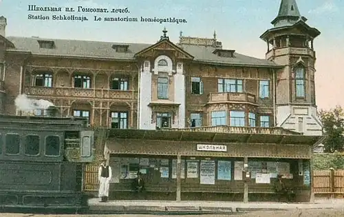 Shkolnaya railway station (Russian: Ста́нция Шко́льная) is a former railway station located near Sestroretsk (suburb of Saint Petersburg), Russia. The station functioned within the first two decades of the 20th century, presently it doesn't exist.