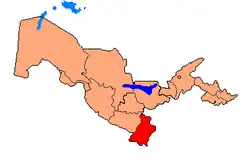 Shoʻrchi (Uzbek: Shoʻrchi/Шўрчи, Russian: Шурчи, romanized: Shurchi) is a city in Surxondaryo Region, Uzbekistan. It is the administrative center of Shoʻrchi District.[2] The town population was 16,560 people in 1989,[3] and 25,000 in 2016.[1] It is mentioned in the works of Kudain and Ibn Khurdadbeh that there was a village of Barangi in the Shorchi region. There were several mosques in Barangi in the 11th and 12th centuries.