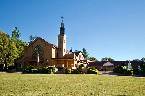With the help of many benefactors, a property was brought in 1984. There in 1985, he converted the existing barn into a house and chapel, which though very primitive, would serve as the monastery and church until something better could be built. The pilgrims that had already started coming to visit when Fr Augustine was at Berrima soon started to come to the new property. A rocky cave formation at the end of the property was found and turned into a grotto inspired in appearance by the one where Our Lady appeared at Lourdes. To this grotto, below which an altar was built, processions would regularly take place. As more and more pilgrims arrived, the shrine continued to grow, and more men joined the new community prompting the local bishop to raise the Shrine of Our Lady of Mercy to the level of an official diocesan shrine. It took the next ten years to accomplish, but in 1995 the Father and Brothers now living at the shrine were able to move into a newly built monastery attached to an also newly built church. The Church and Monastery were then consecrated on May 24, 1997. Further additions were made to the property in 2010 when the neighbouring property was purchased, adding 50 acres of land and two houses, one of which was converted into a piety shop and the other for pilgrims to stay for short periods. In 2011 the "Old Monastery" where the Pauline Fathers had started was renovated.[3][4]