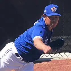 On December 28, 2019, Yamaguchi signed a two-year, $6.35 million contract with the Toronto Blue Jays.[9][10] On January 15, 2020, he held a press conference in Toronto.[11][12][13] After the press conference, he stayed in Toronto,[14] and attended a fan meeting.[15] On March 26, he returned to Japan due to the COVID-19 pandemic.[16] He returned to Toronto after the MLB announcement of the 2020 regular season. Yamaguchi was issued uniform # 1, being only the fifth Toronto pitcher (not initially listed as a position player) to ever pitch in a game wearing a single digit uniform number after Josh Towers, Kyle Drabek, Marcus Stroman, and Clayton Richard.[17]