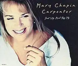 "Shut Up and Kiss Me" is a song written and recorded by American country music artist Mary Chapin Carpenter. It was released in August 1994 as the first single from her album Stones in the Road. The song became her only number one hit on the Billboard Hot Country Singles & Tracks (now Hot Country Songs) charts on November 19, 1994; it also peaked at number 90 on the Billboard Hot 100. The song features Lee Roy Parnell accompanying on slide guitar, Benmont Tench on piano, Don Dixon on bass, Kenny Aronoff on drums, and Trisha Yearwood providing backing vocals.[2] The song also won Carpenter a Grammy Award in 1995 for Best Female Country Vocal Performance.[3]