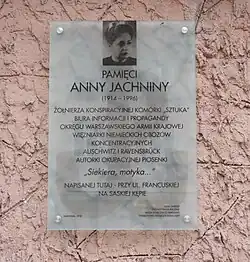 - ^ Hejna, Katarzyna & Sowińska, Hanka (June 28, 2010). "Zabić wojnę śmiechem. Opowieść o Annie Jachninie - autorce słów piosenki "Siekiera, motyka..."". Gazeta Pomorska. Retrieved November 26, 2011.