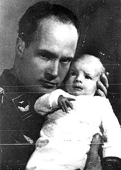 ![]() Rascher posing with one of the children kidnapped by his wife | |