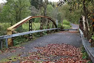 Silk Street Bridge is a historic Lenticular pony truss bridge located at Newark Valley in Tioga County, New York. It was constructed in 1888 and spans the East Branch of Owego Creek. It was constructed by the Berlin Iron Bridge Company of East Berlin, Connecticut.[2] The bridge is currently closed to traffic.