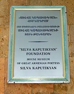 - ^ "House-museum of Silva Kaputikyan". Arara Tour. Retrieved 2020-09-30.